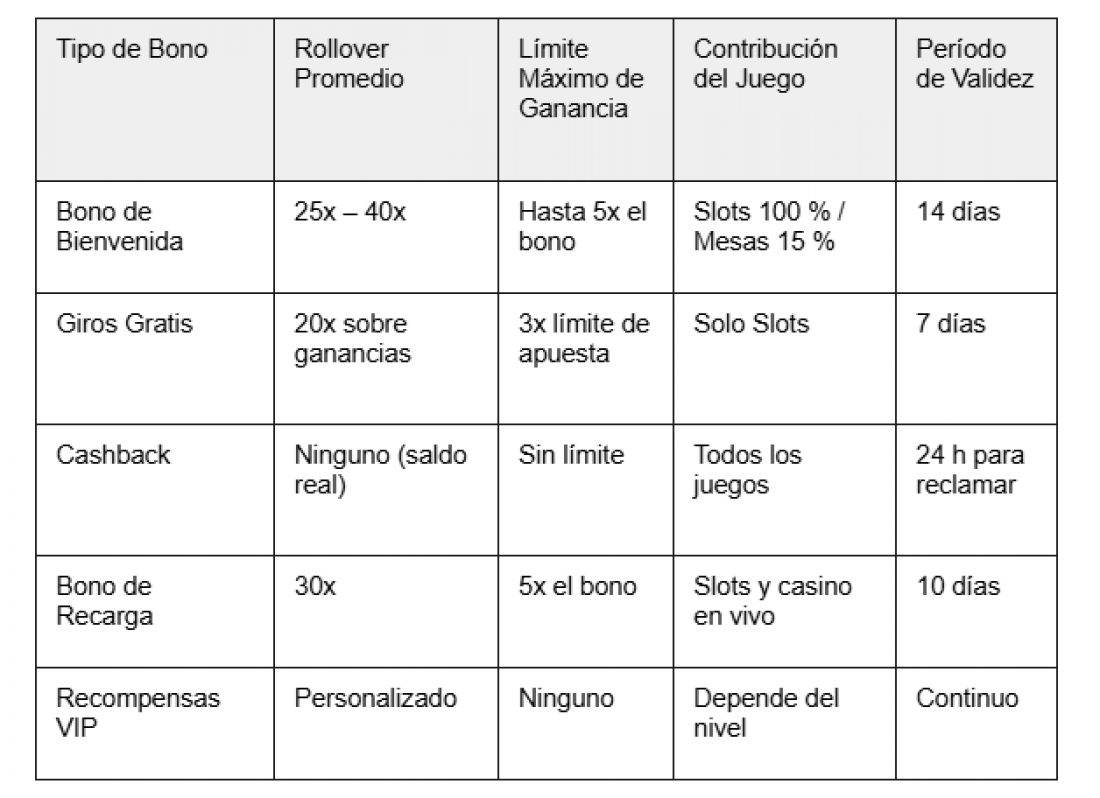 Antes de explorar estrategias, es útil reconocer las principales categorías de bonos disponibles en los casinos online venezolanos: