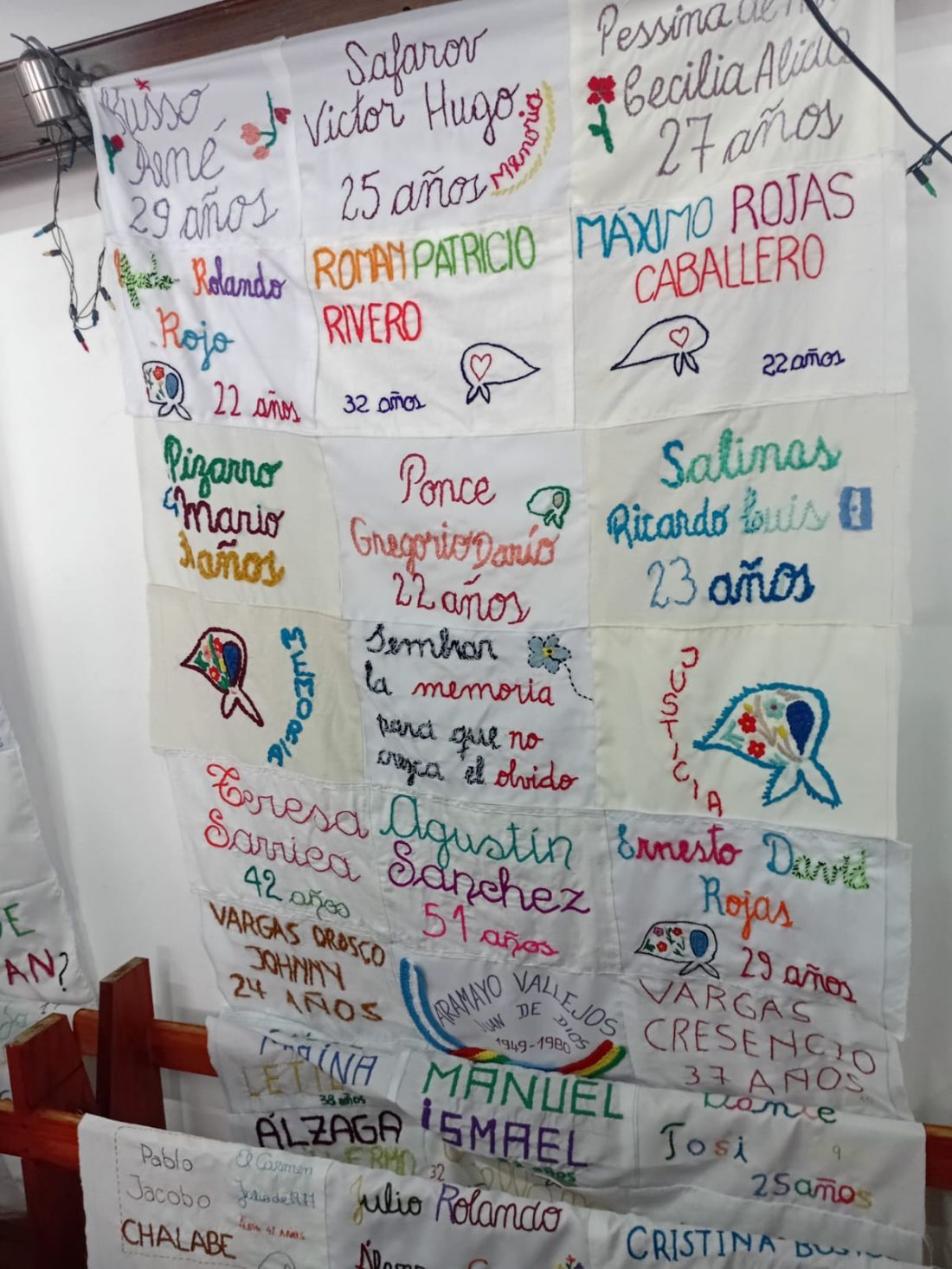 La bandera bordada con los nombres de los/as detenidos/as desaparecidos/as de Jujuy