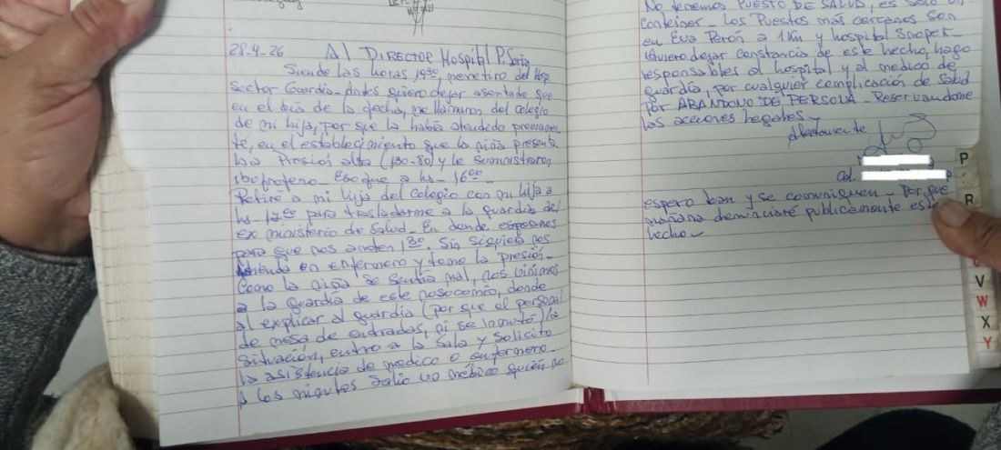Ya en el edificio de la cartera sanitaria, la adolescente no logró ser atendida por la demanda, por lo que se trasladó con su acompañante hasta el Hospital Pablo Soria, una vez allí, pidió anotarse en la guardia. Ya eran las 18.30. un médico de la unidad le manifestó a la tutora que debía trasladarse a la sala de salud del barrio para realizar la atención a la menor. Con domicilio en Alto Comedero y sabiendo que la salita o el NODO ya estaba cerrado, la mujer dejó constancia en el libro de quejas del hospital sobre el abandono de persona.