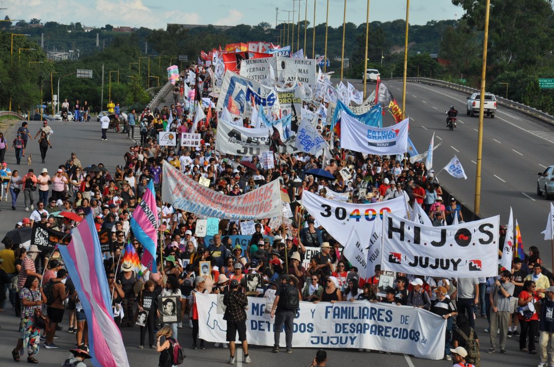 En movilización en San Salvador de Jujuy, una bandera extensa de paños realizados por el colectivo Bordando Memoria, fue motivo de encuentro; cada paño recuerda el nombre de uno de los 145 detenidos desaparecidos de Jujuy. La iniciativa nacional hizo pie en la provincia, mujeres y hombres bordaron paños dobles con los nombres, unos se fueron a Buenos Aires para estar en el acto central y otros se lucieron en las actividades en la provincia.