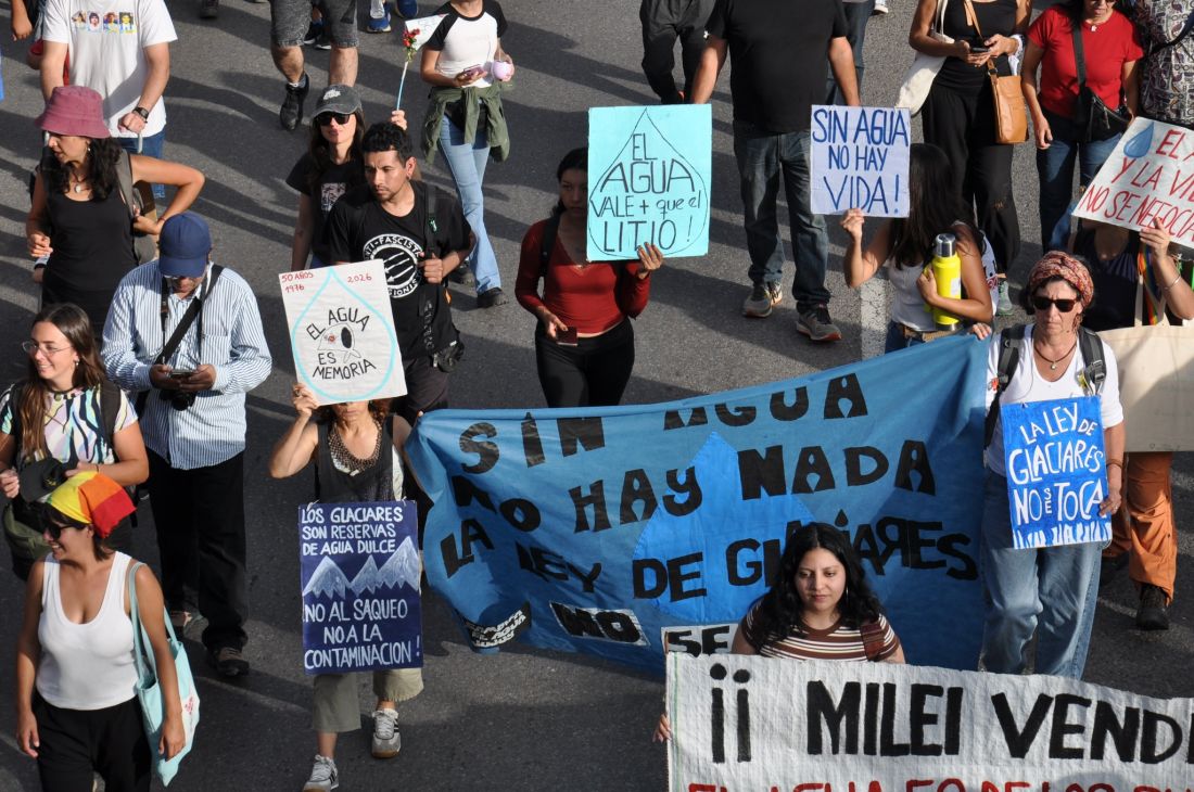 En el acto hubo varias intenciones: condena efectiva a los genocidas, libertad a los presos políticos, abajo la reforma laboral, el rechazo al intervencionismo militar en América Latina y al genocidio en Gaza. No a la criminalización de la protesta social. Defensa de los glaciares, el agua y los derechos de los pueblos originarios.