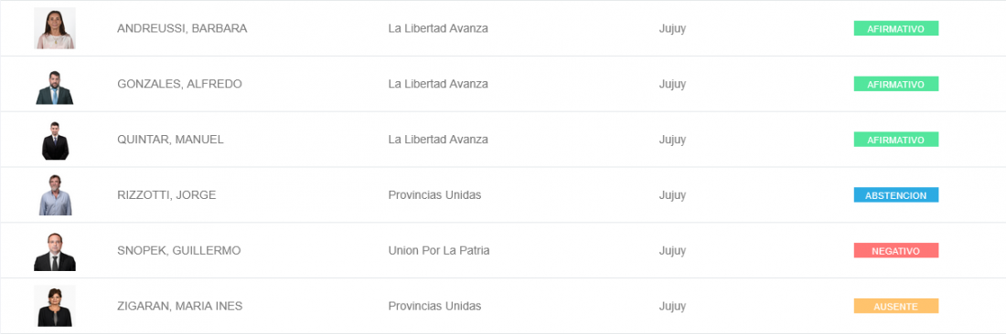 Más allá de los errores de tipeo que dejaron dudas sobre algunos puntos, finalmente el oficialismo logró los votos necesarios para aprobar en Diputados el proyecto. En el caso de legisladores por Jujuy, la votación estuvo partida entre los que apoyaron, tal como lo hicieron los libertarios Manuel Quintar, Bárbara Andreussi y Alfredo Gonzáles. En tanto, Guillermo Snopek fue el único que votó en contra, mientras que el radical Jorge Rizzotti se abstuvo y su par Inés Zigaran se ausentó.